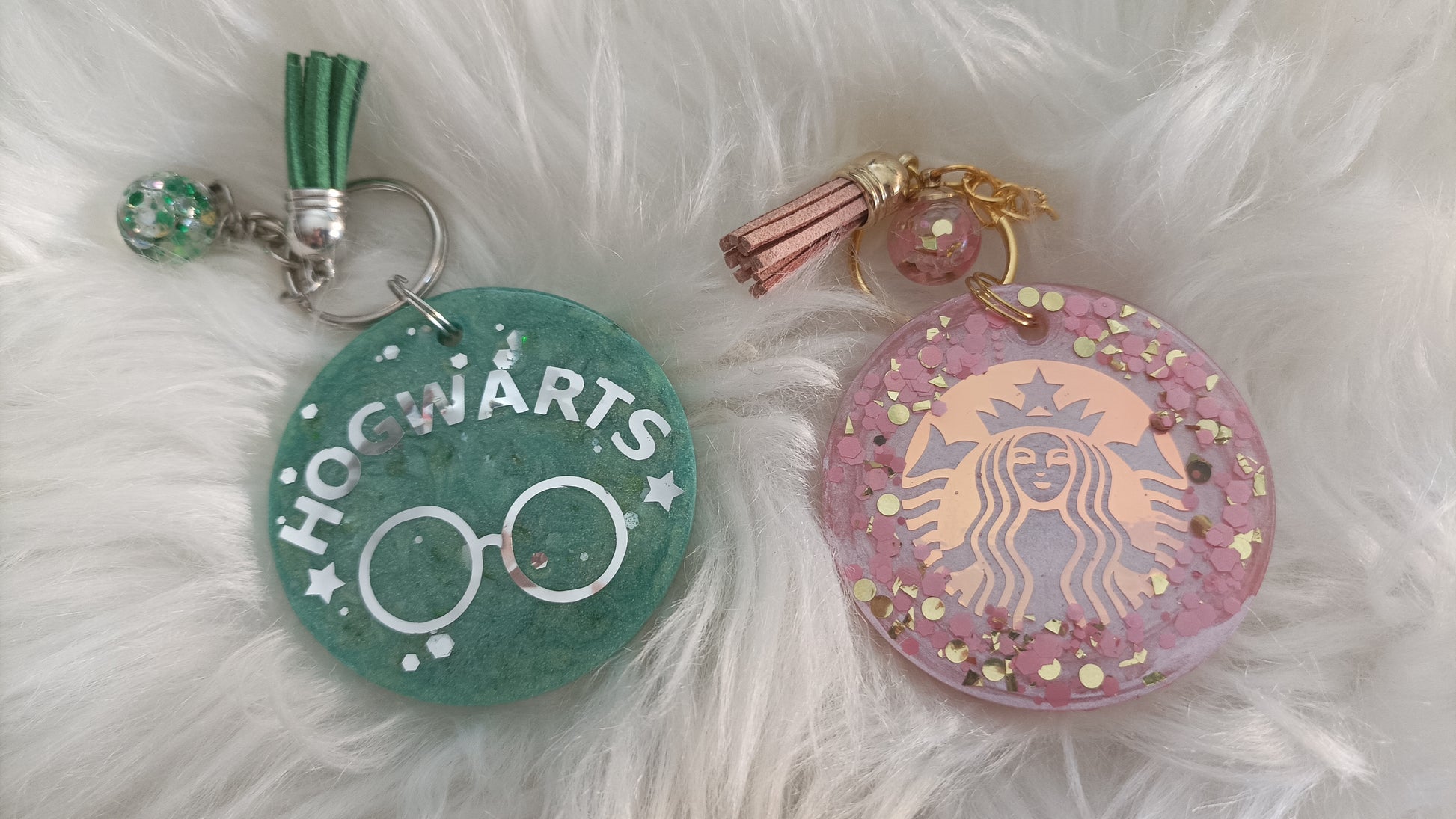 Llaveros hechos de resina, lo puedes personalizar como quieras, puedes elegir un llavero de las fotos o poner en la casilla una explicación bien escrita sobre los colores y vinilos que quieres.